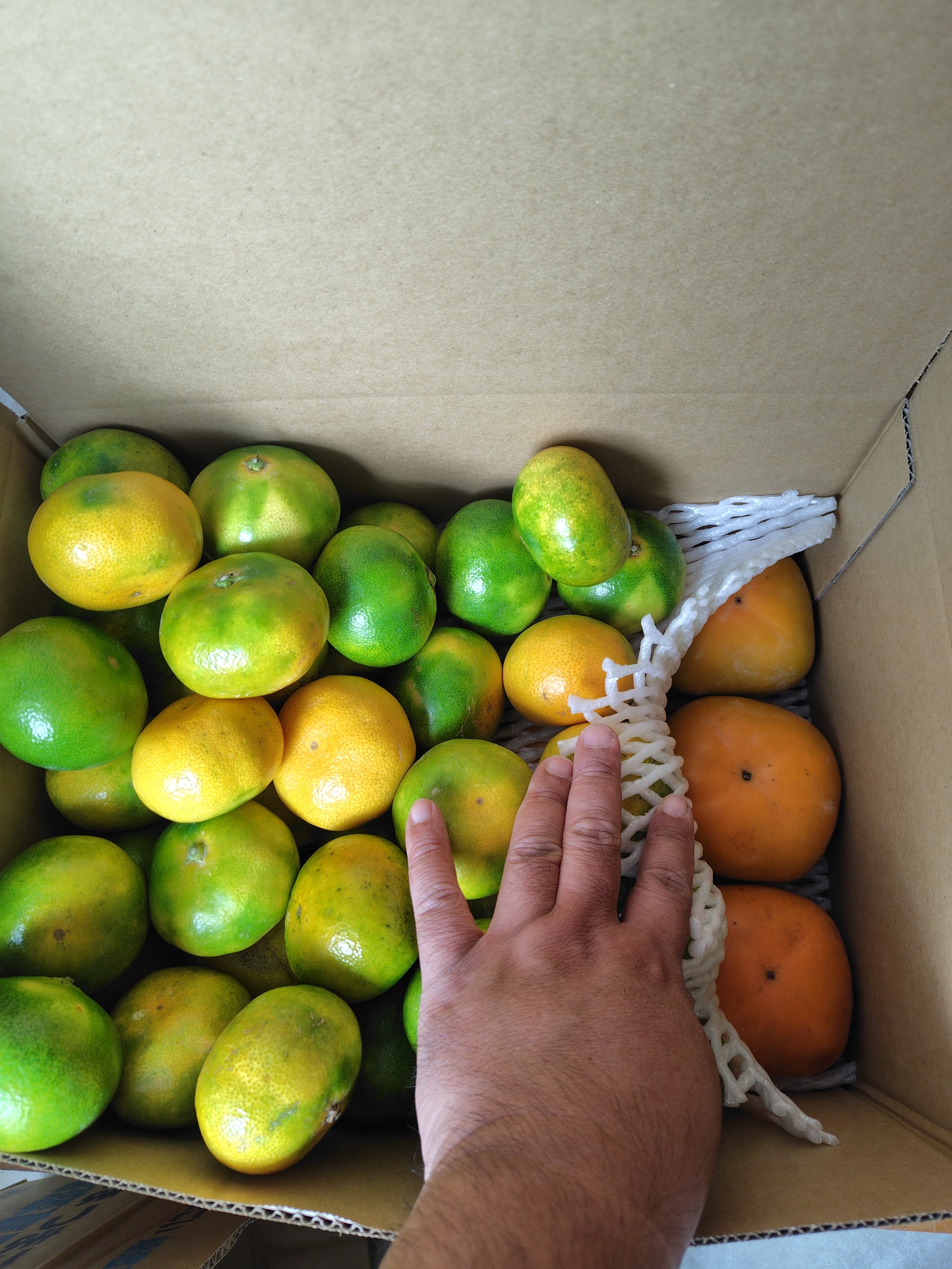 奈良県産の刀根柿3Lサイズ12玉(下段)熊本県産極早生みかん約5キロのセット